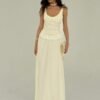 Aloruh New Fitted Stretch Herringbone Sexy Low-Cut Pleated Lace Trim Solid Color White Dress