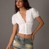 TRNVIE Embroidery Cotton Casual Elegant V-Neck Crop Blouse For Young Women